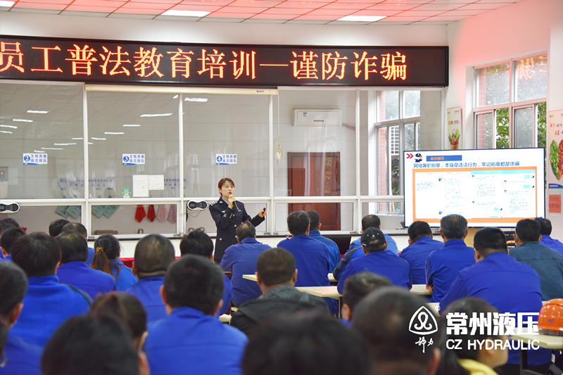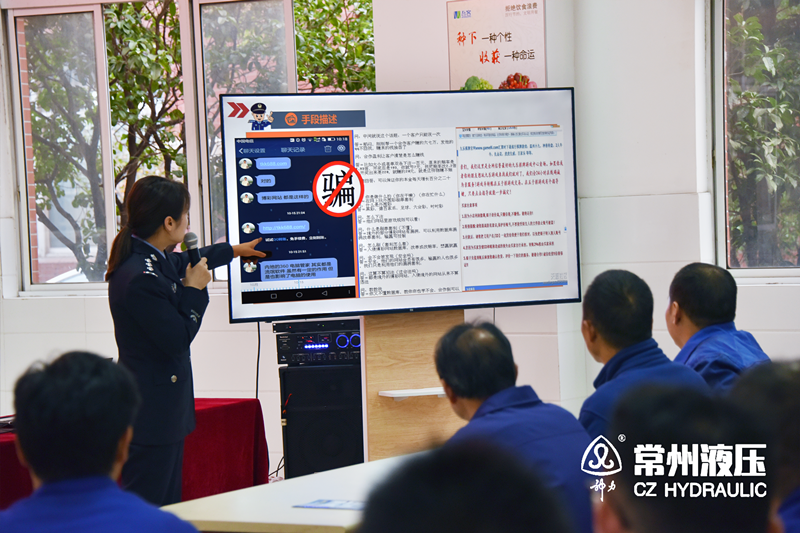 針對當(dāng)前各類詐騙警情持續(xù)多發(fā)高發(fā)、詐騙手法變化多樣的情況,為進(jìn)一步增強(qiáng)企業(yè)員工安全風(fēng)險防范意識,提高對詐騙信息的甄別、抵御能力,常州液壓成套設(shè)備廠有限公司舉辦謹(jǐn)防詐騙宣教活動,邀請了常州市公安局武進(jìn)分局錢警官擔(dān)任主講,由常州液壓總經(jīng)辦朱主任主持,全體職工參加了此次活動。