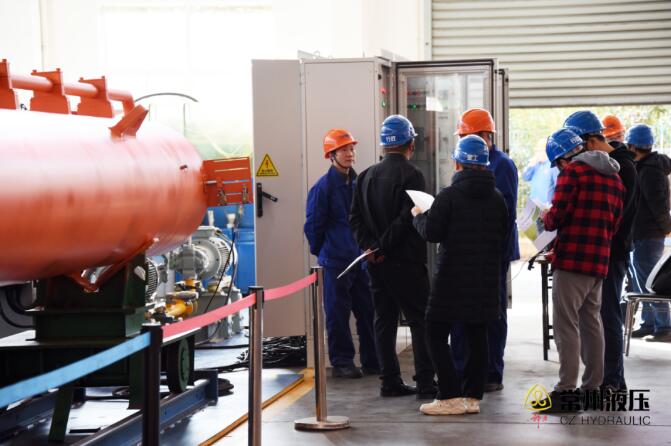 驗(yàn)收組聽取了常州液壓對浙江寧海抽水蓄能電站尾水事故閘門液壓式啟閉機(jī)的油缸、泵站及電控柜制造情況的介紹,對出廠資料進(jìn)行了認(rèn)真審閱。