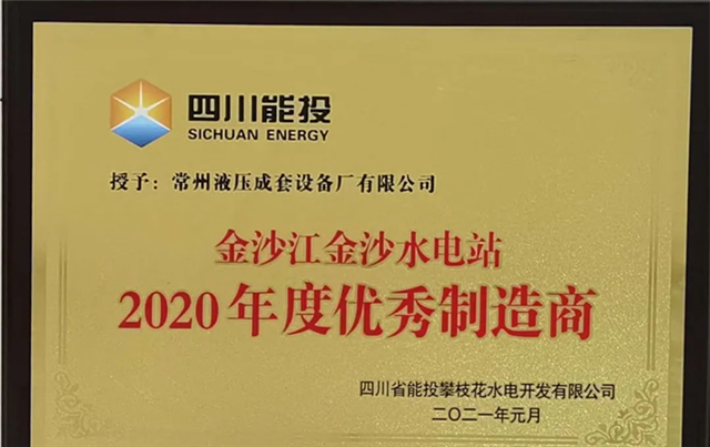 喜訊 | 常州液壓成套設(shè)備廠有限公司榮獲“金沙江金沙水電站2020年度優(yōu)秀制造商”稱號(hào)!