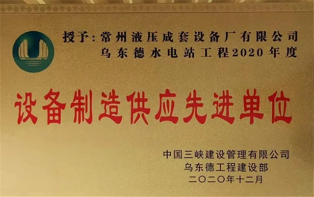 近日,中國三峽建設(shè)管理有限公司烏東德工程建設(shè)部召開2020年度設(shè)備制造供應(yīng)先進(jìn)單位表彰大會(huì)。常州液壓成套設(shè)備廠有限公司以優(yōu)質(zhì)的產(chǎn)品和優(yōu)異的服務(wù)在眾多供應(yīng)商中脫穎而出,繼2019年獲得“設(shè)備制造供應(yīng)先進(jìn)單位”稱號(hào)之后,再次蟬聯(lián)此殊榮。常州液壓作為中國三峽建設(shè)管理有限公司烏東德水電站項(xiàng)目液壓?jiǎn)㈤]機(jī)成套設(shè)備供應(yīng)商